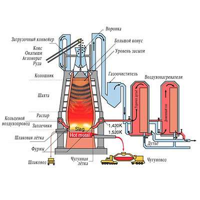 Описание: Подробное описание технологического процесса в доменном производстве, от подготовки сырья до выпуска готового чугуна.