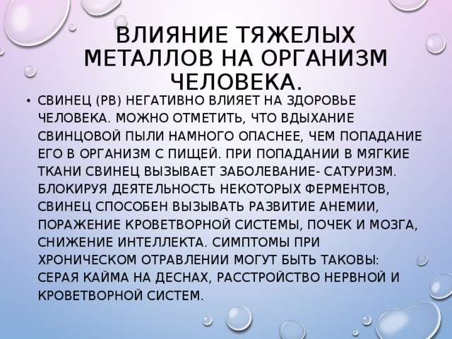Воздействие тяжелых металлов на здоровье человека